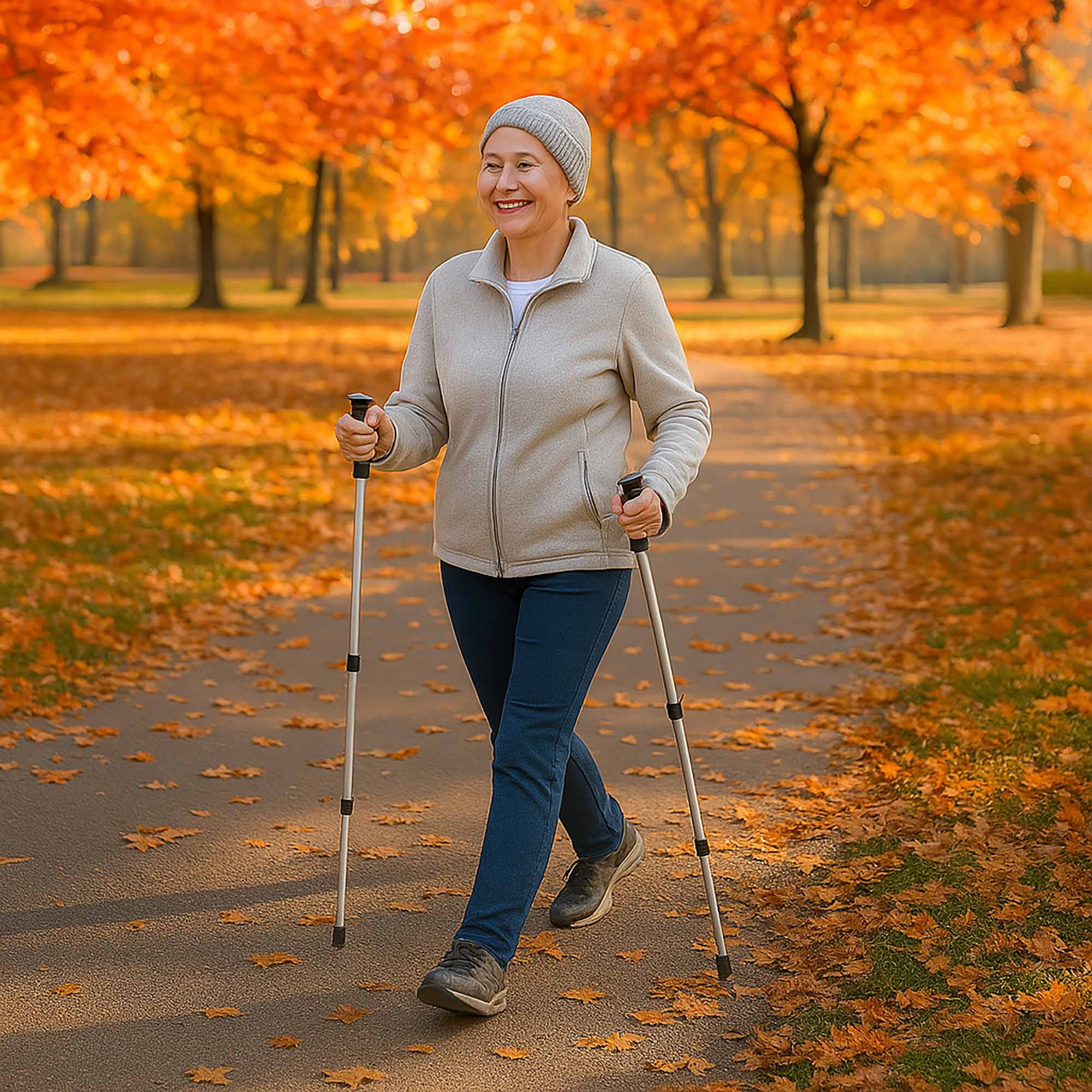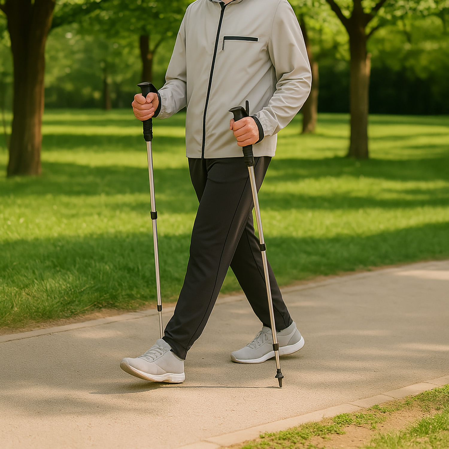 - Ustaw odpowiednią do Twojego wzrostu długość kijka.